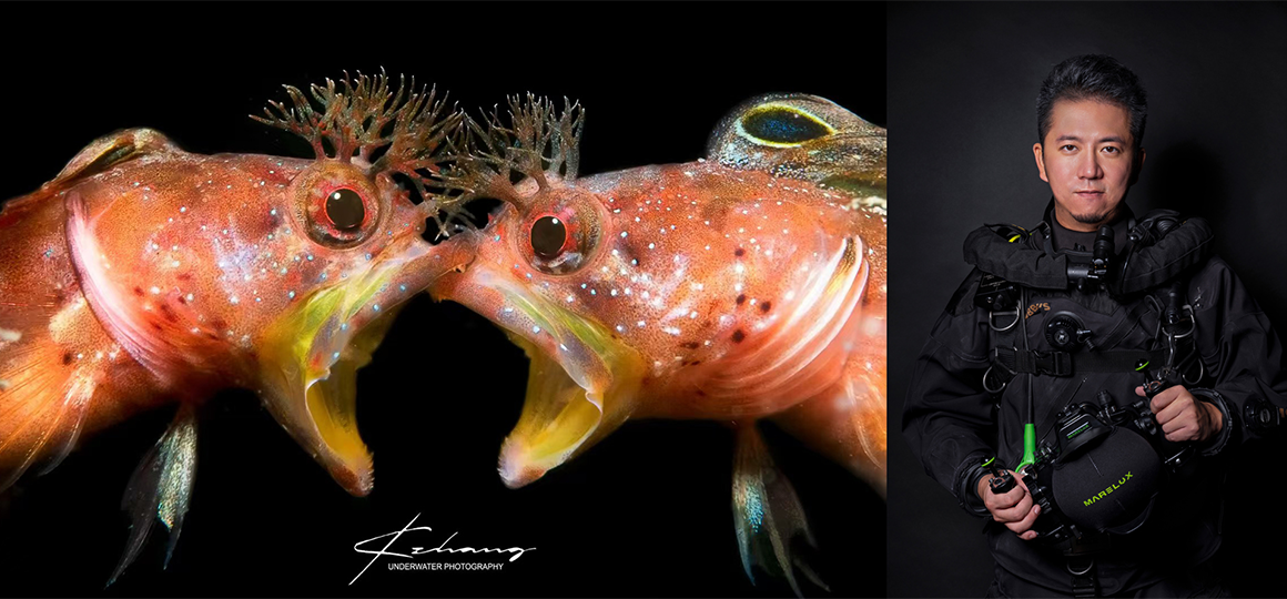 張 競功氏はフルタイムの水中写真家であり、生態行動写真およびブラックウォーターフォトグラフィーの分野で世界的に高く評価されています。 彼の作品は数多くの国際的な水中写真コンテストで受賞しており、その主な実績は以下のとおりです。