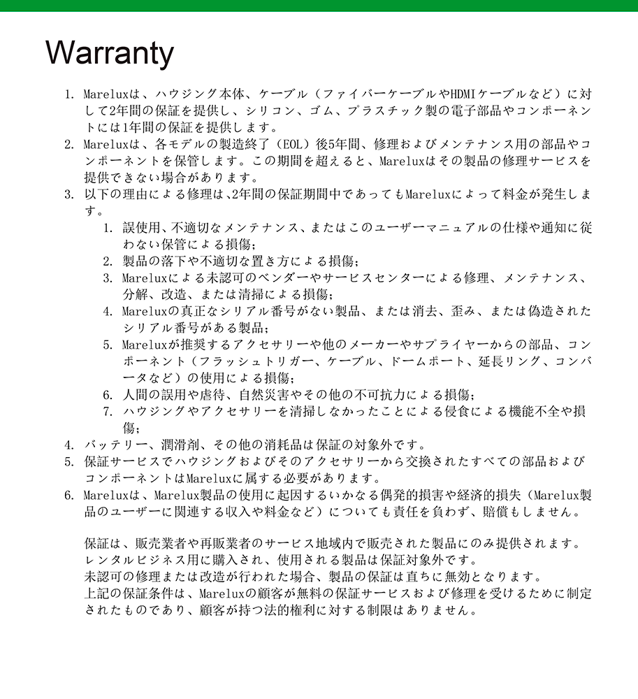 メンテナンスと保証 |